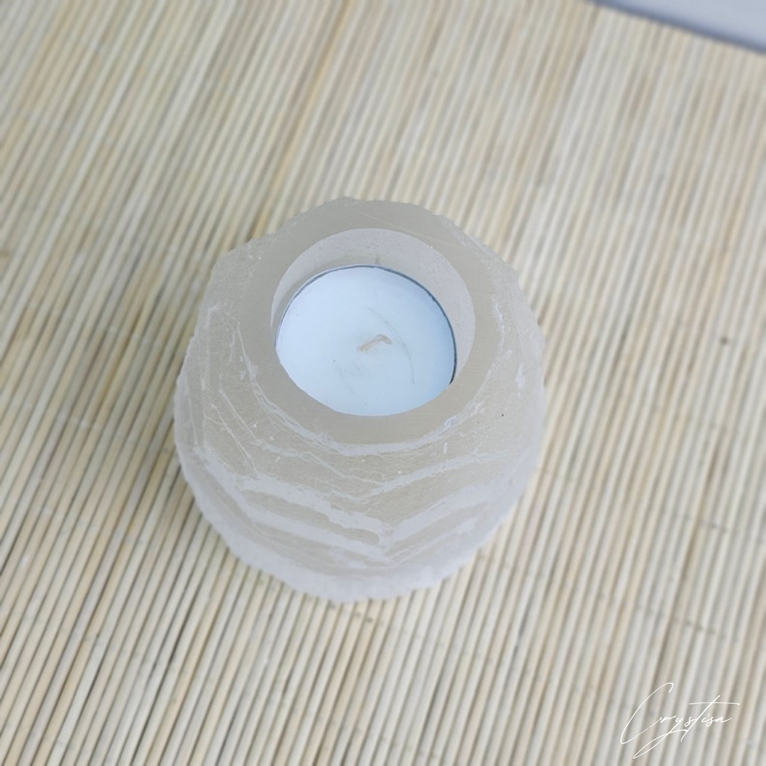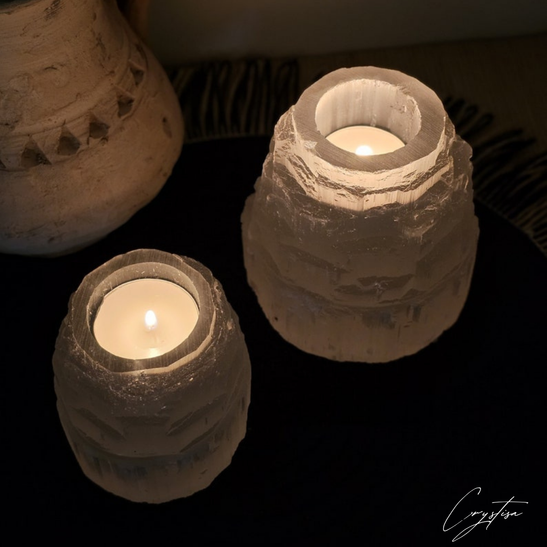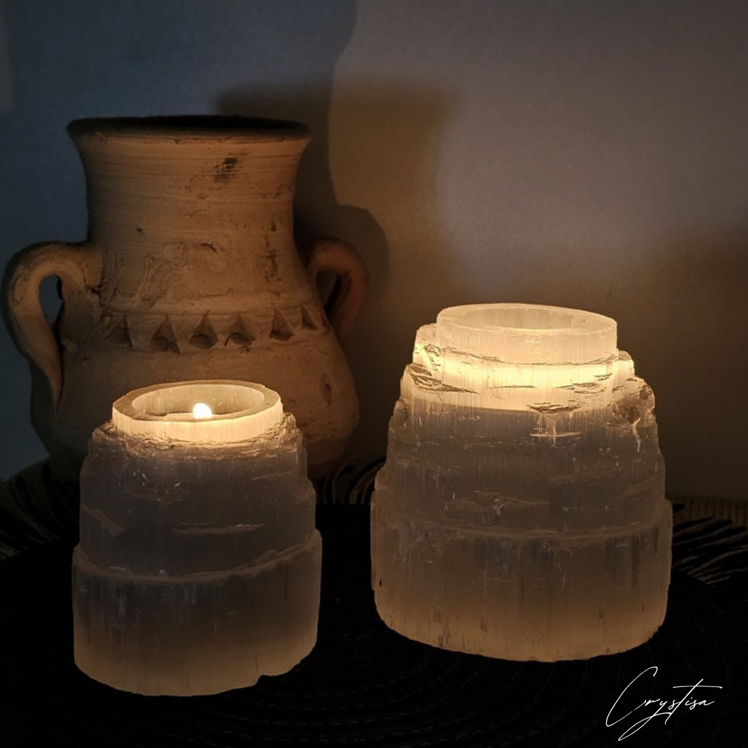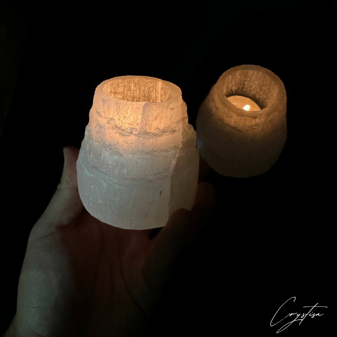 Parfait pour la méditation, la relaxation, ou comme pièce de décoration naturelle, ce bougeoir en sélénite diffuse une lumière apaisante qui transforme n'importe quel espace en oasis de sérénité. Chaque pièce est unique, sculptée avec soin pour conserver la beauté et les propriétés naturelles de la sélénite