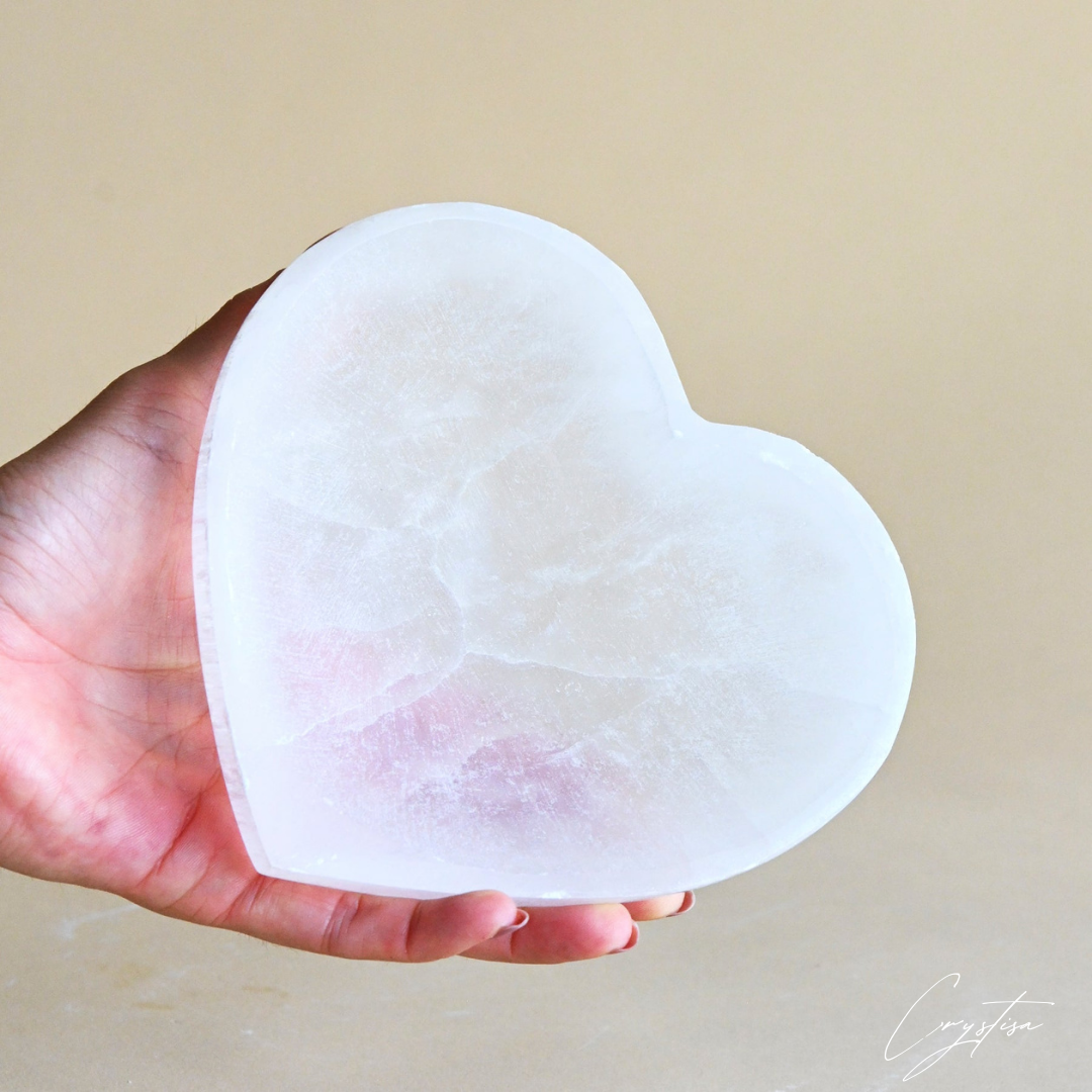 Ce cœur en sélénite blanche est une pièce décorative idéale pour organiser vos petits objets précieux, cristaux ou bijoux. Avec sa forme délicate et sa finition lisse, il apporte une touche de pureté et de sérénité à n'importe quel espace. Son éclat naturel et sa beauté intemporelle en font un accessoire parfait pour une décoration apaisante ou un cadeau symbolique.