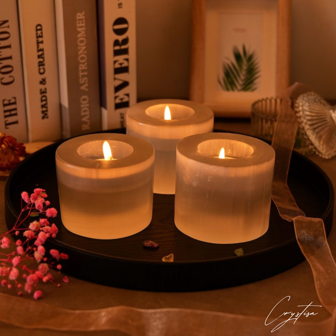 🕯️ Illuminez vos soirées avec élégance – Pack de 3 porte-bougies en sélénite ! 🕯️
