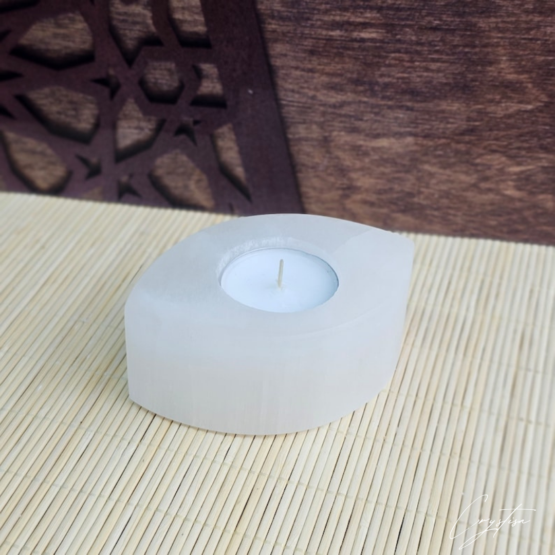 Ce porte-bougie en forme d'œil, sculpté dans de la sélénite. Son design unique et élégant transforme n'importe quel espace en un lieu de tranquillité. Parfait pour créer une atmosphère chaleureuse et inspirante, il fait aussi un cadeau original et significatif. Que ce soit pour la méditation, la décoration ou un moment de détente, cet œil en sélénite vous offre une ambiance mystique et sereine.